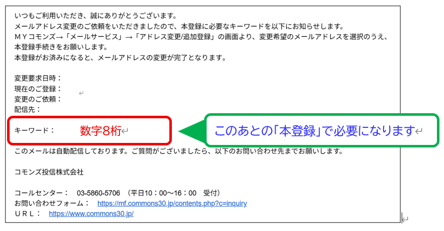 (1) 変更後のメールアドレスに「メールアドレス登録キーワード送付メール」が届く